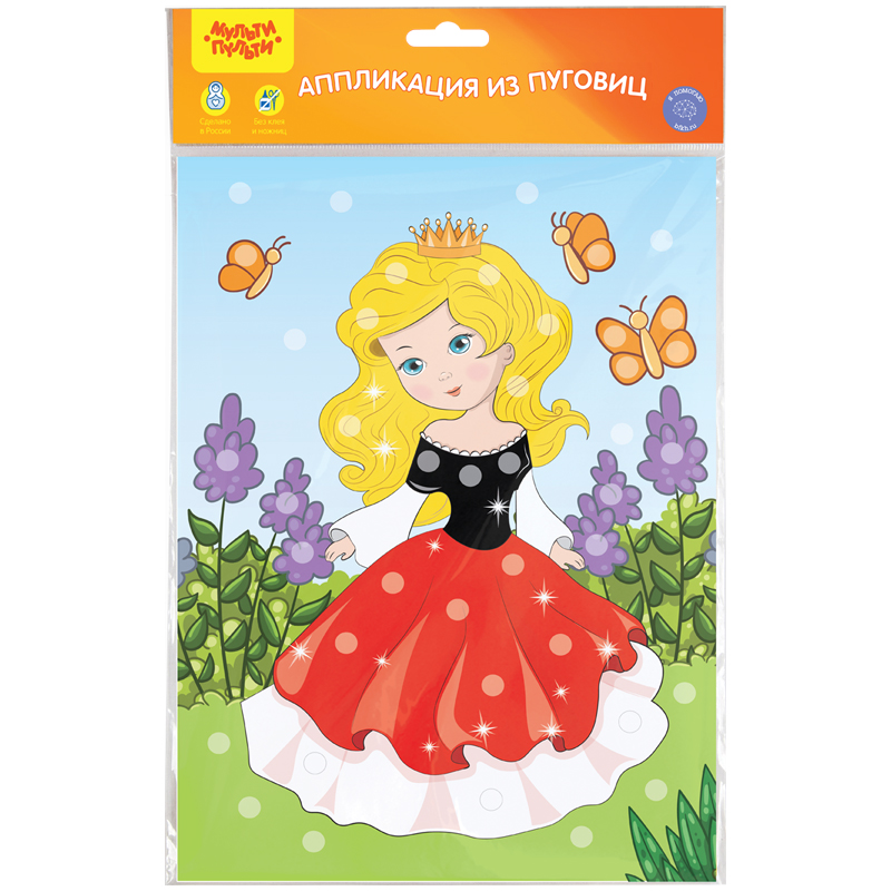Аппликация из пуговиц Мульти-Пульти "Принцесса", 21*29,5см, с раскраской, европодвес