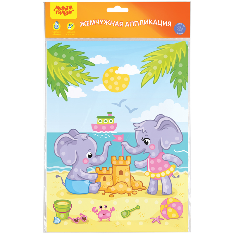 Аппликация жемчужная Мульти-Пульти "Слонята", 21*29,5см, с раскраской, европодвес