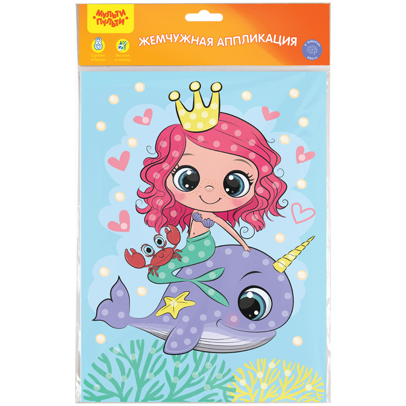 Аппликация жемчужная Мульти-Пульти "Русалочка", 21*29,5см, с раскраской, европодвес