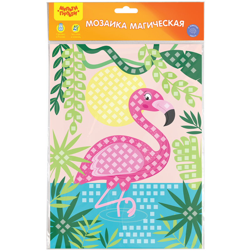 Мозаика магическая на самоклеящейся основе Мульти-Пульти "Фламинго", 21*29,5см, из мягкого пластика, с раскраской, европодвес