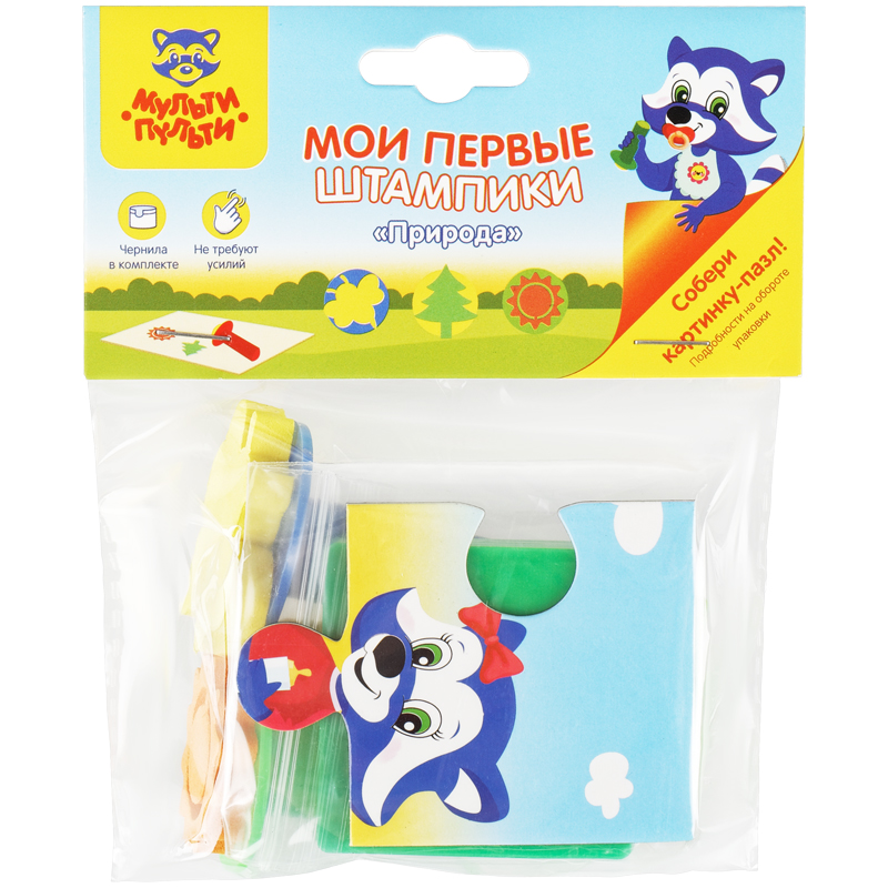 Набор штампиков с ручкой для творчества Мульти-Пульти "Природа", EVA, 3шт., с чернилами