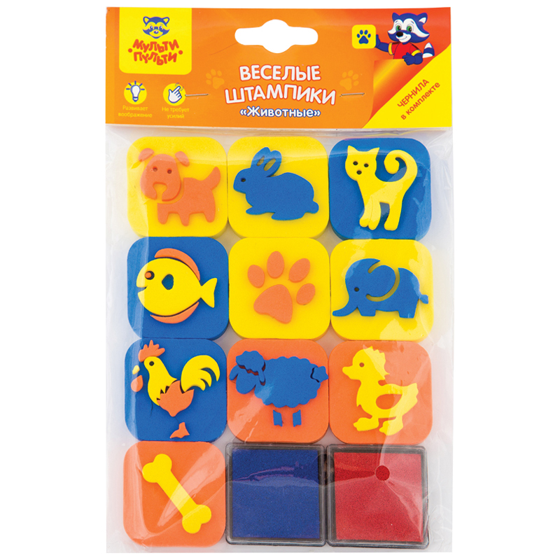 Набор штампиков для творчества Мульти-Пульти "Животные", EVA, 10шт., с чернилами