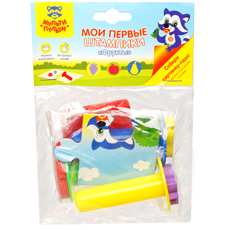 Набор штампиков с ручкой для творчества Мульти-Пульти "Фрукты", EVA, 3шт., с чернилами