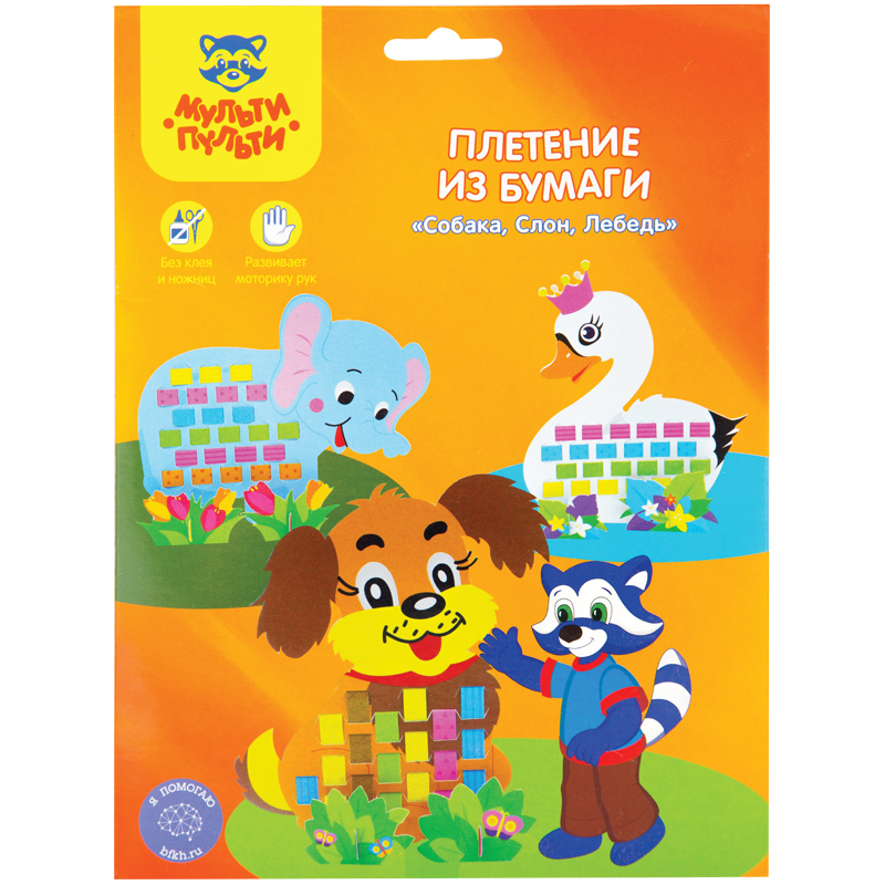 Плетение из бумаги Мульти-Пульти "Собака, Слон, Лебедь", картон, европодвес