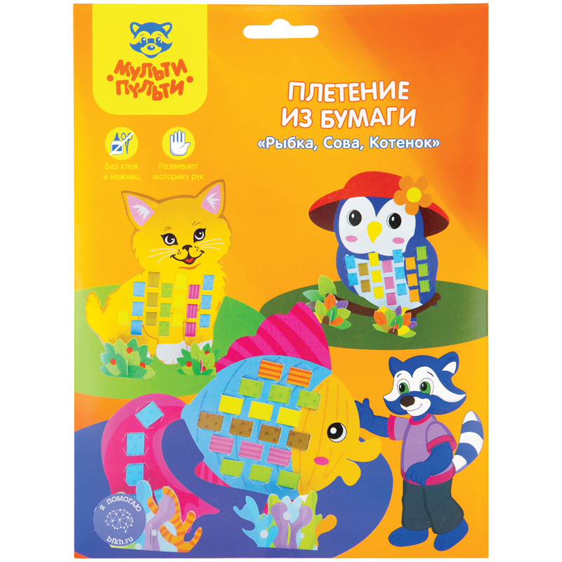 Плетение из бумаги Мульти-Пульти "Рыбка, Сова, Котенок", картон, европодвес