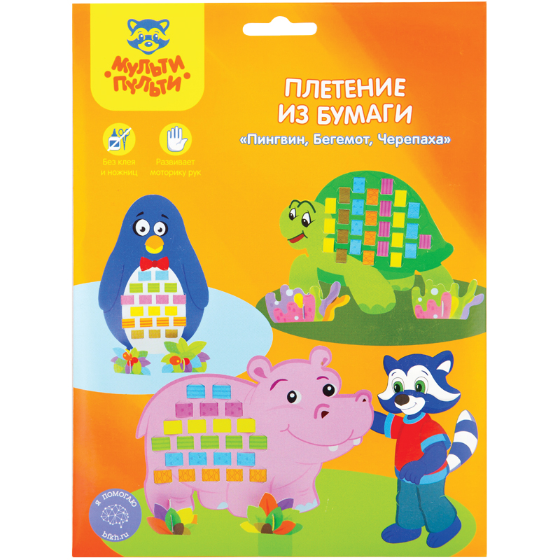 Плетение из бумаги Мульти-Пульти "Пингвин, Бегемот, Черепаха", картон, европодвес
