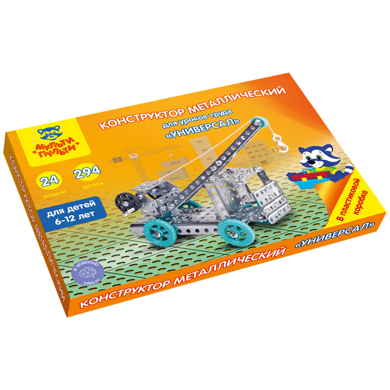 Конструктор металлический Мульти-Пульти "Для уроков труда. Универсал", №3, 294 эл., пластик. коробка