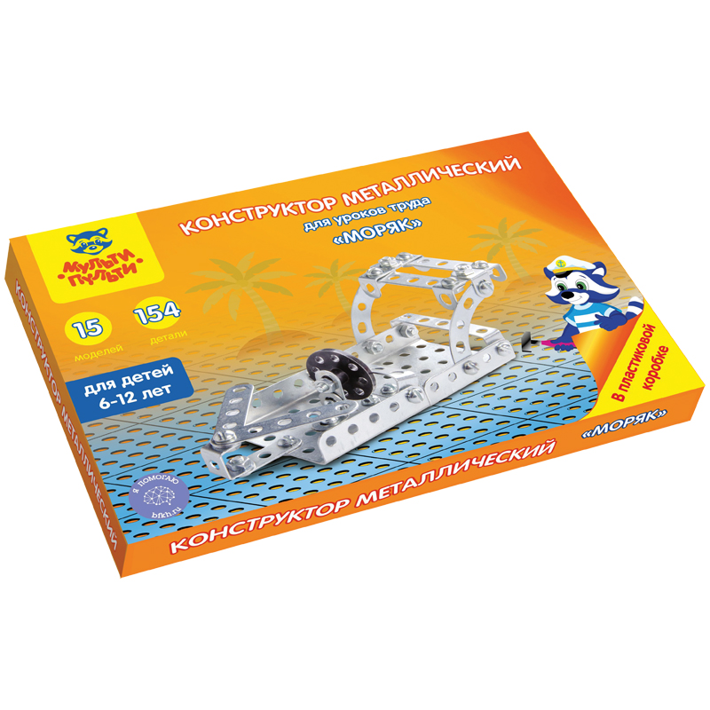 Конструктор металлический Мульти-Пульти "Для уроков труда. Моряк", №5, 154 эл., пластик. коробка