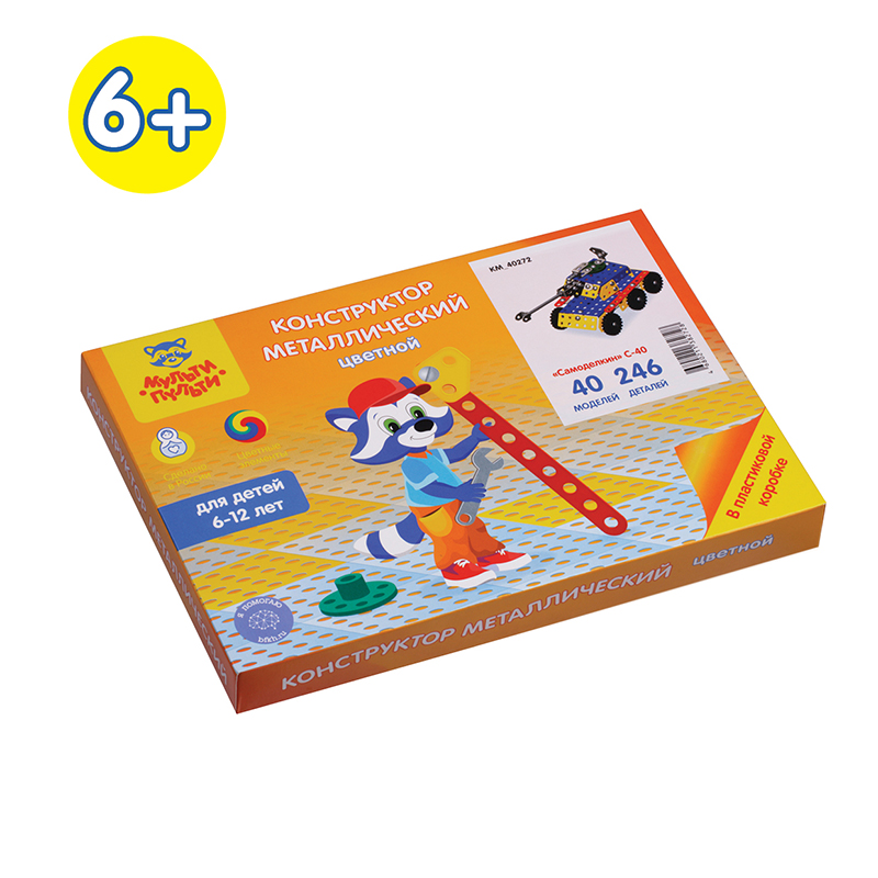 Конструктор металлический цветной Мульти-Пульти "Самоделкин С-40", 40 моделей, 246 эл., пластик. коробка
