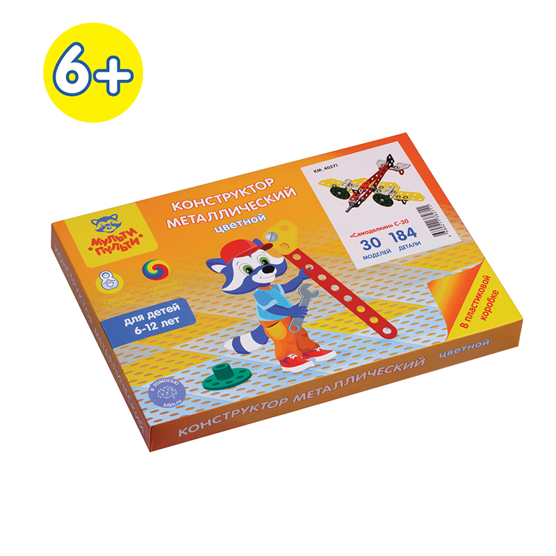 Конструктор металлический цветной Мульти-Пульти "Самоделкин С-30", 30 моделей, 184 эл., пластик. коробка