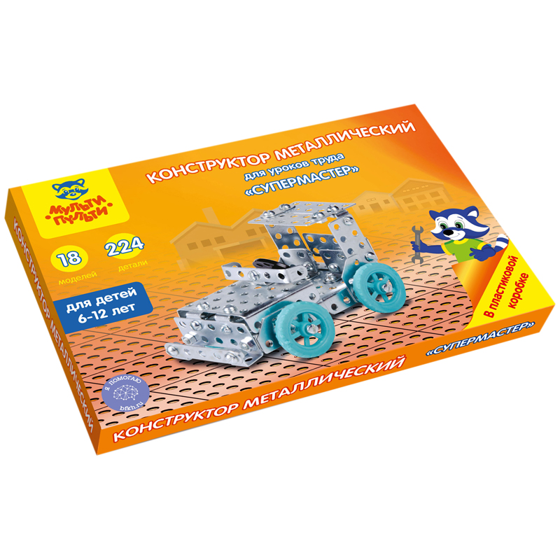 Конструктор металлический Мульти-Пульти "Для уроков труда. Супермастер", №2, 224 эл., пластик. коробка