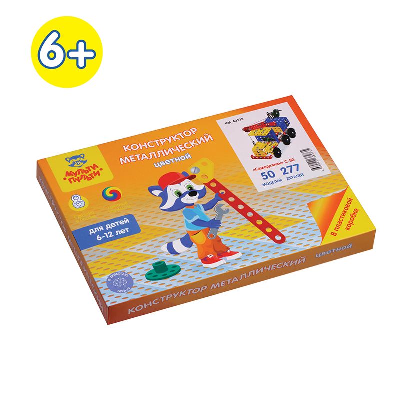 Конструктор металлический цветной Мульти-Пульти "Самоделкин С-50", 50 моделей, 277 эл., пластик. коробка