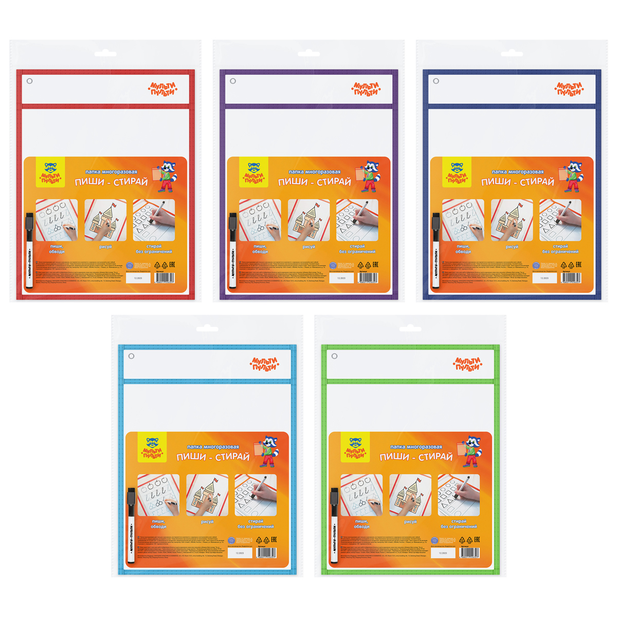 Папка многоразовая "Пиши-стирай" Мульти-Пульти для письма и рисования, с маркером, ассорти, европодвес