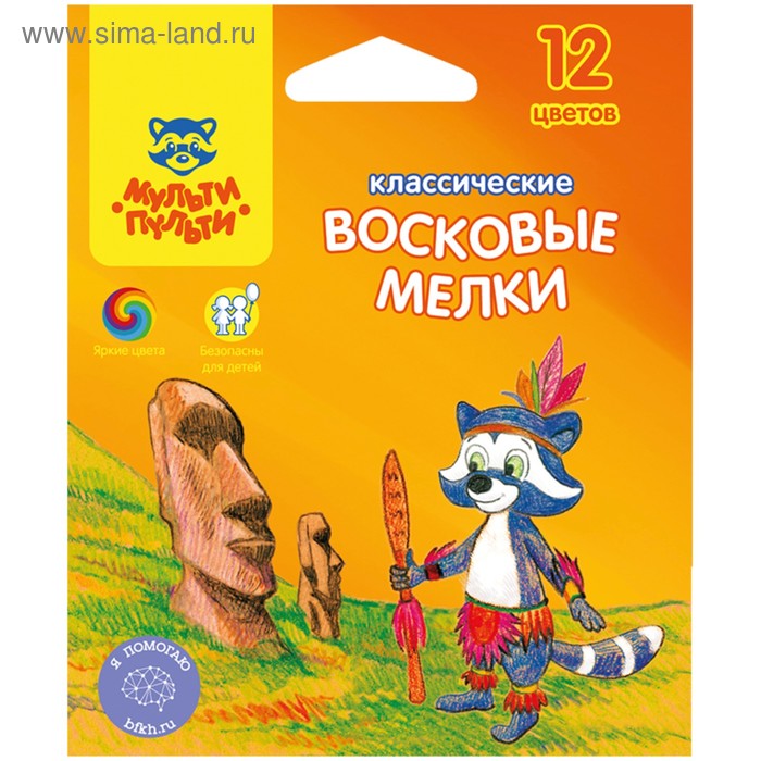 Мелки восковые 12 цветов Мульти-Пульти "Енот на острове Пасхи", круглые, картонная упаковка, европодвес