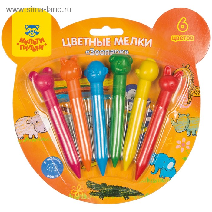 Мелки восковые 6 цветов Мульти-Пульти "Зоопарк", круглые