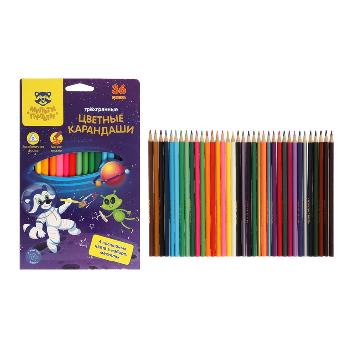Карандаши 36 цветов "Енот в космосе", трехгранные