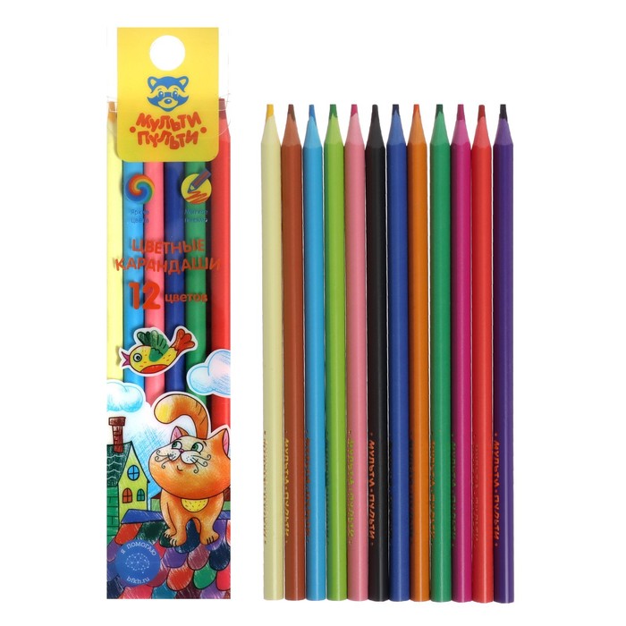 Карандаши 12 цветов Мульти-Пульти "Кот на крыше", пластиковые, европодвес