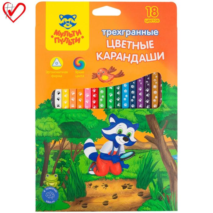 Карандаши 18 цветов "Енот-следопыт"