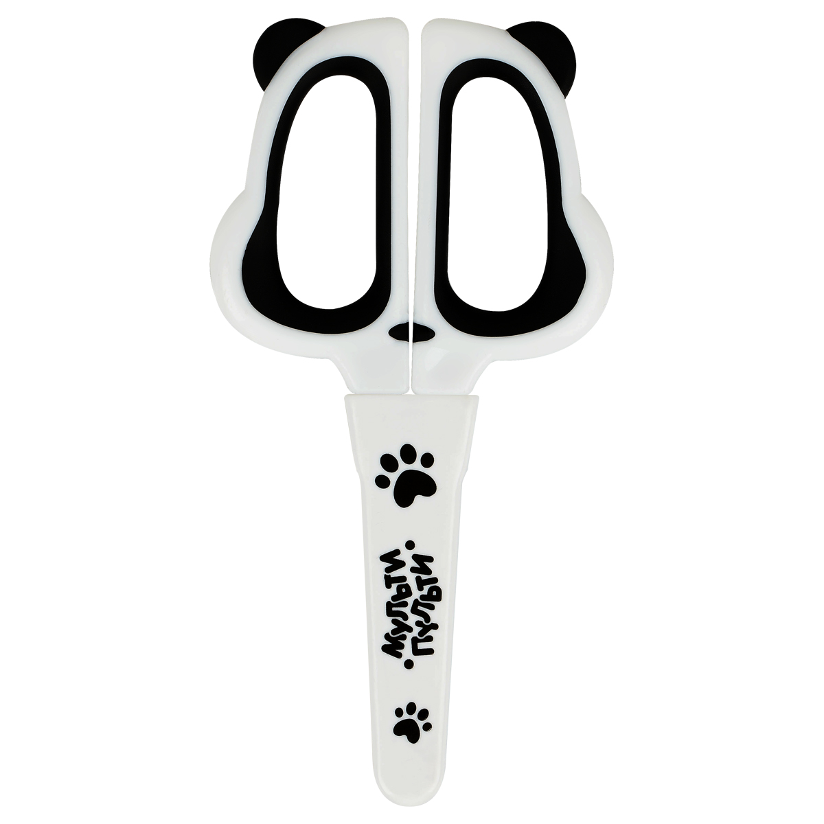 Ножницы детские Мульти-Пульти "Приключения Енота" 13см, фигурные ручки "Панда", в футляре, блистер с европодвесом