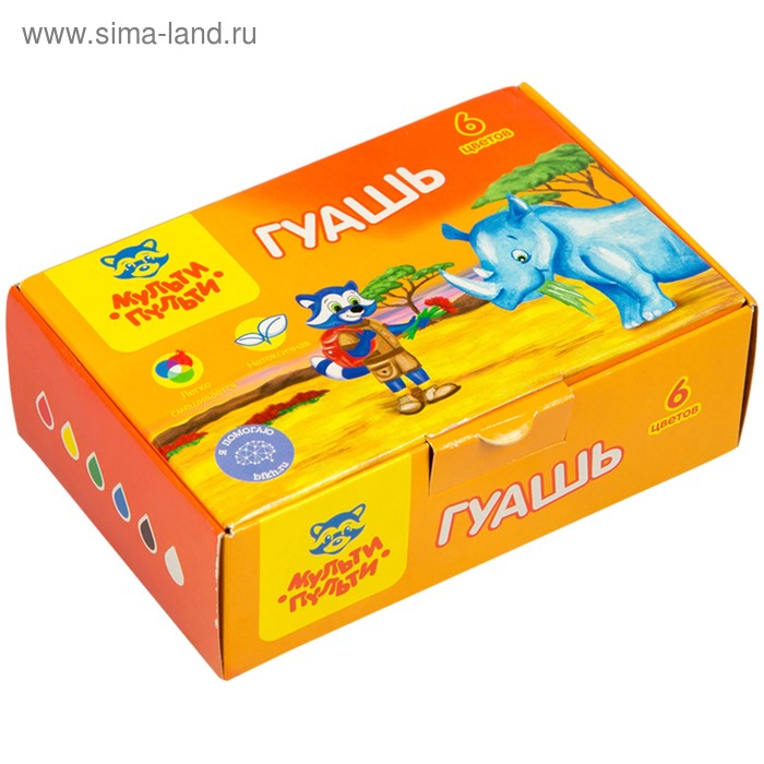Гуашь 6 цветов по 20 мл Мульти-Пульти "Енот в Африке", картонная упаковка