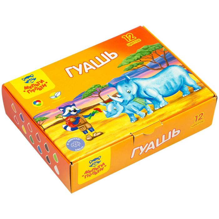 Гуашь 12 цветов по 20 мл Мульти-Пульти "Енот в Африке"