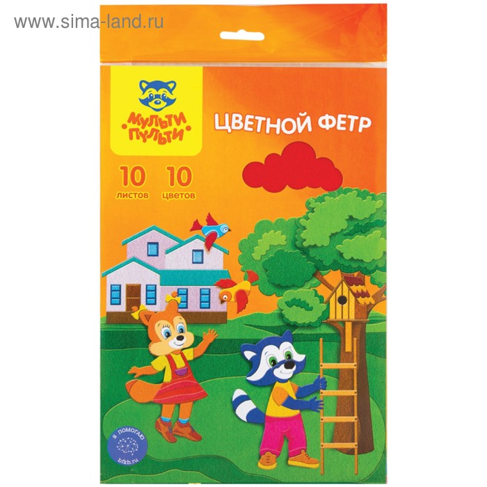 Фетр А4, 10 листов, 10 цветов Мульти-Пульти "Приключения Енота"