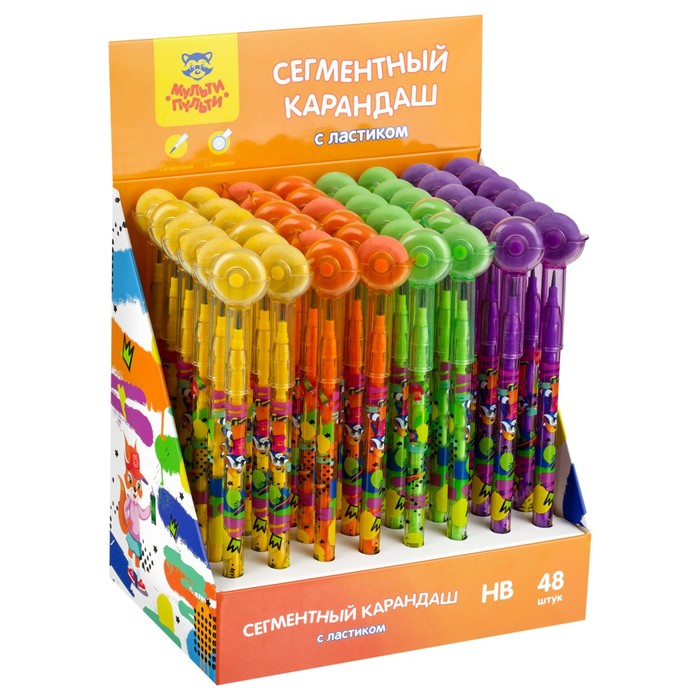Карандаш чернографитный сегментный Мульти-Пульти "Зверята", с ластиком-топпером, МИКС