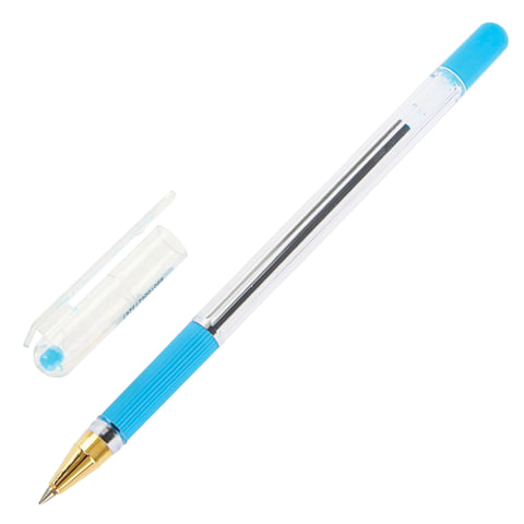 Ручка шариковая масляная с грипом MUNHWA "MC Gold", ГОЛУБАЯ, корпус прозрачный, узел 0,5 мм, линия письма 0,3 мм, BMC-12
