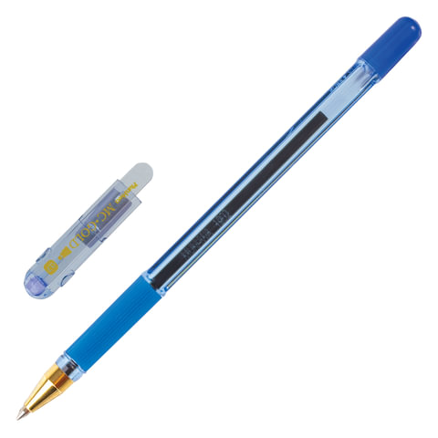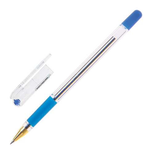 Ручка шариковая масляная с грипом MUNHWA "MC Gold", СИНЯЯ, корпус прозрачный, узел 0,5 мм, линия письма 0,3 мм, BMC-02