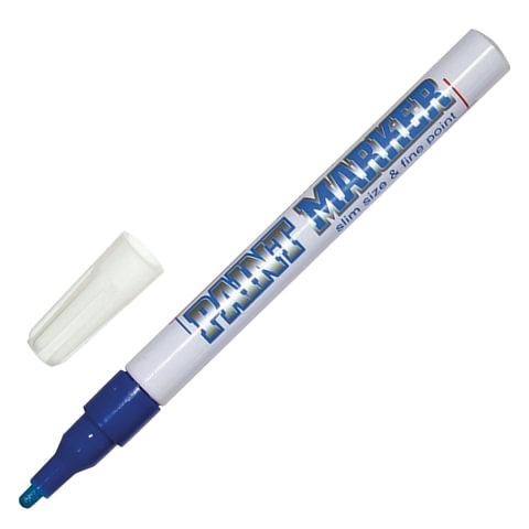 Маркер-краска лаковый (paint marker) MUNHWA "Slim", 2 мм, СИНИЙ, нитро-основа, алюминиевый корпус, SPM-02