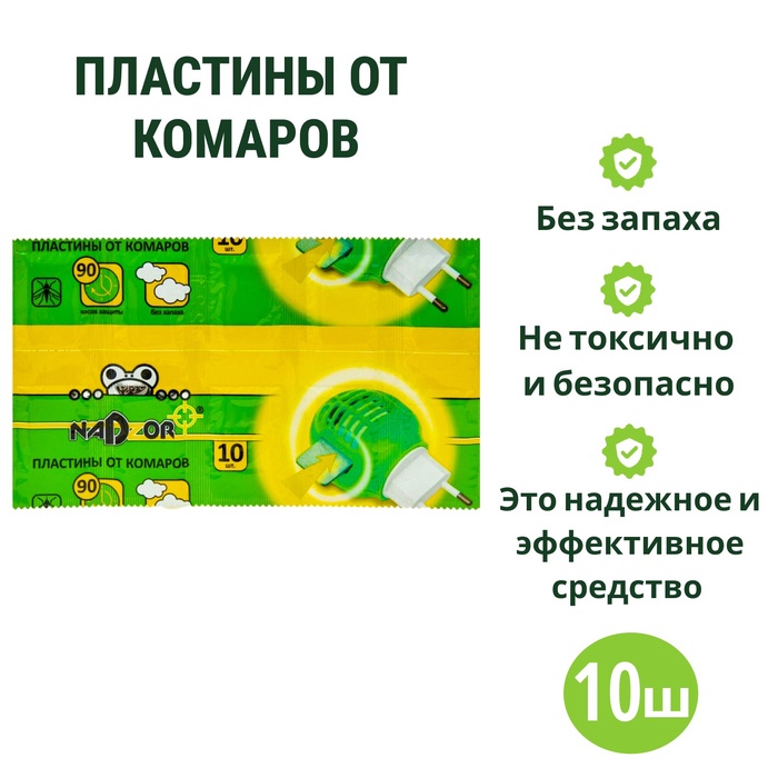 Пластины от комаров Nadzor, без запаха, 10 шт.