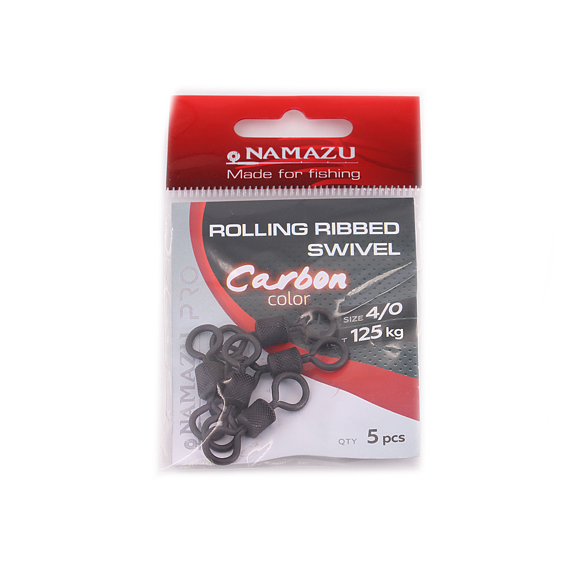 Вертлюг Namazu Pro ROLLING RIBBED SWIVEL, латунь, цв. Carbon, р. 5, test-24 кг (уп. 10 шт.)/1000/