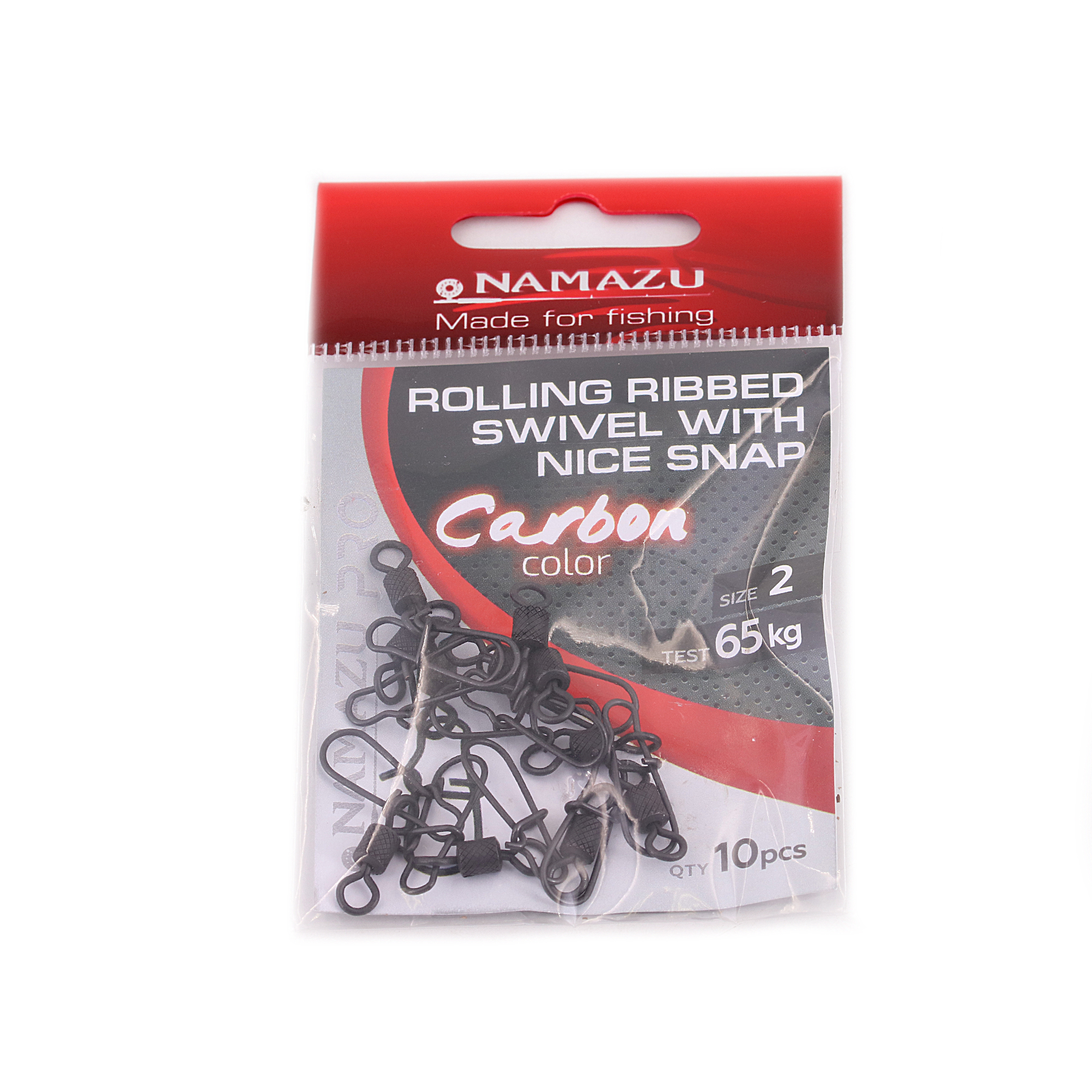 Вертлюг с застежкой Namazu Pro ROLLING RIBBED SWIVEL WITH NICE SNAP, цв. Carbon, р. 2, test-65 кг, к