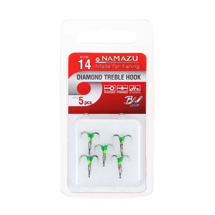 Крючок-тройник светофор Namazu, с каплей и камнем, 14 (INT), цвет YG, в упаковке 5 шт.