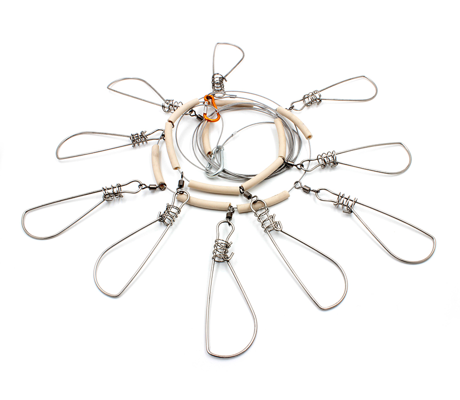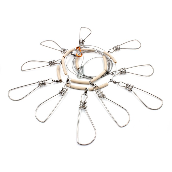 Кукан Namazu металл. трос 4 м, d-2 мм, 10 круг. карабинов (уп. пакет)/15/20/