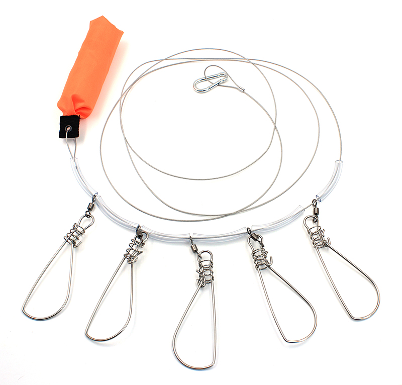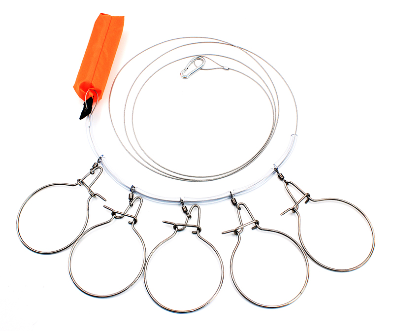 Кукан Namazu металл. трос 2,5 м, d-1,5 мм, 5 карабинов на пруж., с поплавком (уп. пакет)/20/