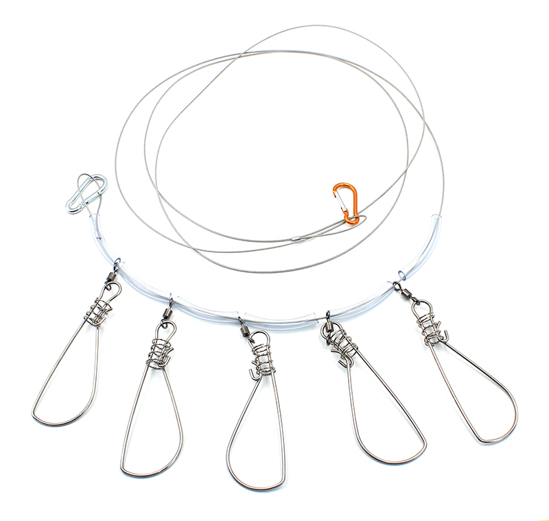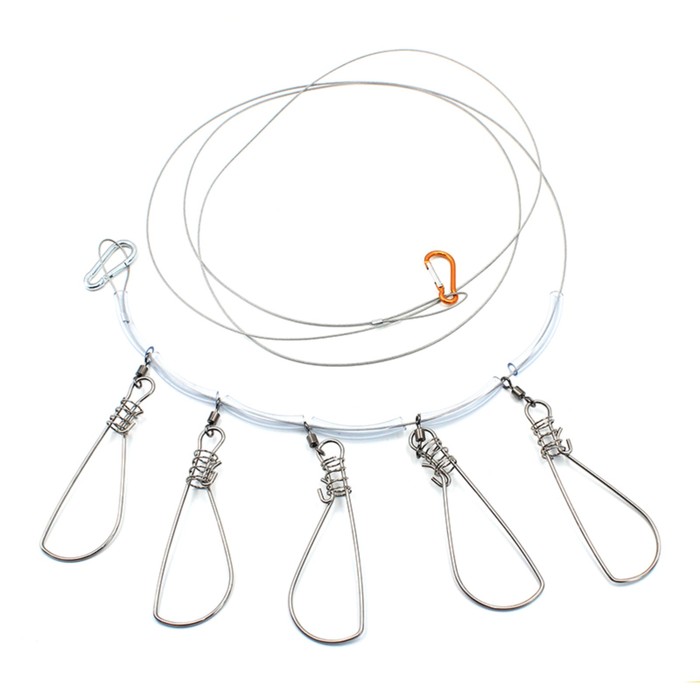 Кукан Namazu трос металл 2.5 м, d=1.5 мм, 5 карабинов на пружине , упаковка пакет