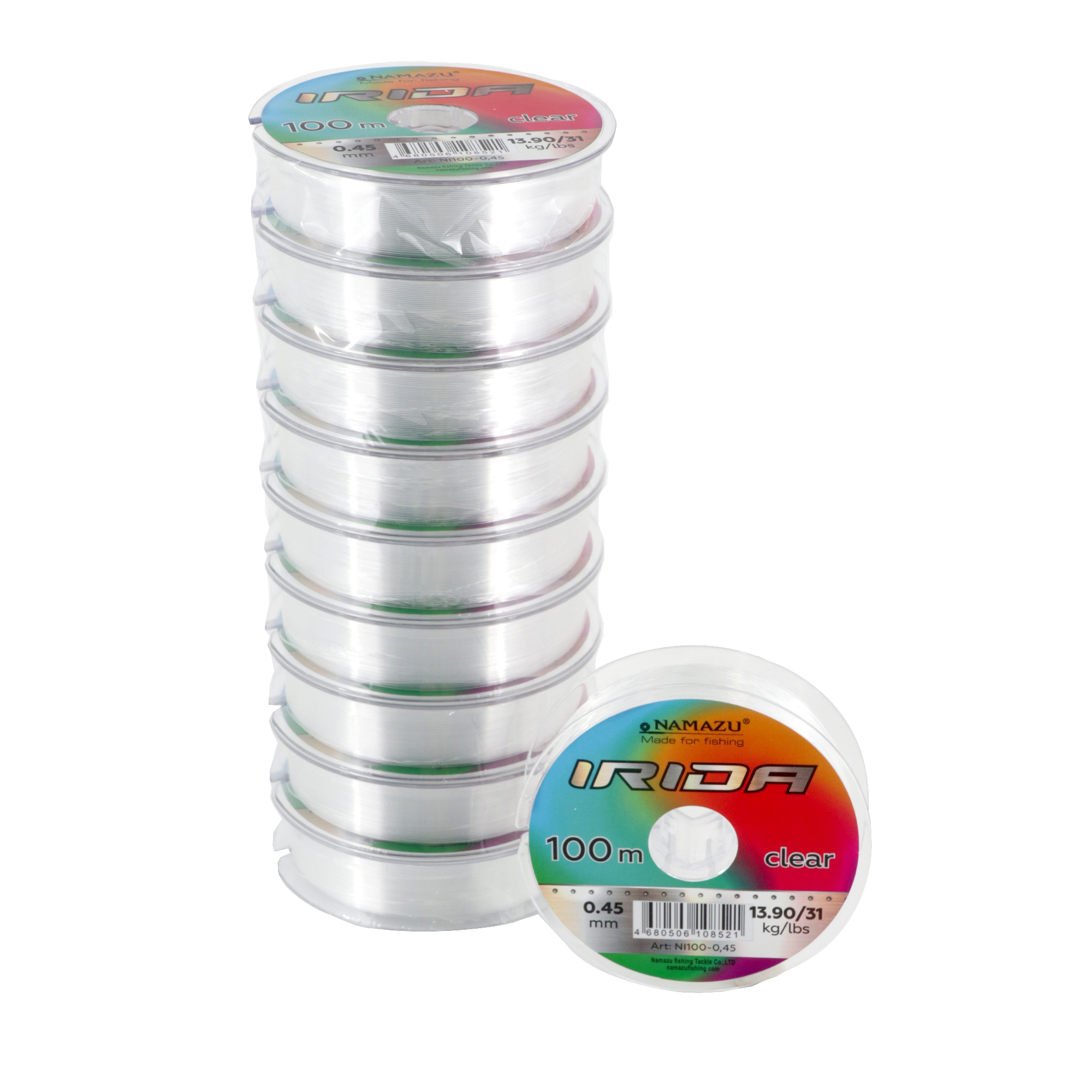 Леска Namazu "Irida", L-100 м, d-0,45 мм, test-13,90 кг, прозрачная (уп. 10 шт.)/200/