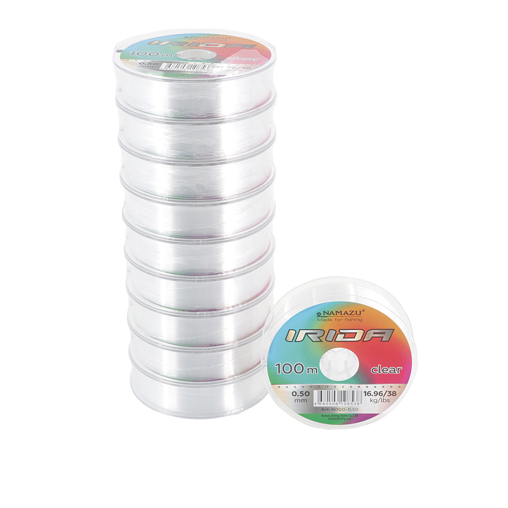 Леска Namazu "Irida", L-100 м, d-0,50 мм, test-16,96 кг, прозрачная (уп. 10 шт.)/200/