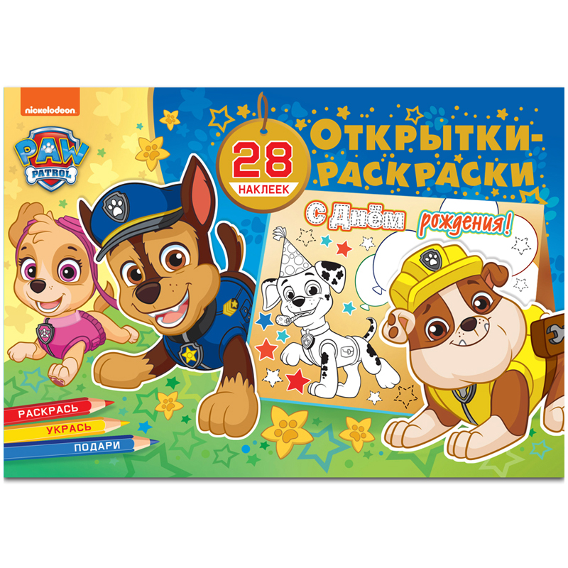 Раскраска-открытка ND Play "Щенячий патруль. Все на праздник!", 16стр., с наклейками