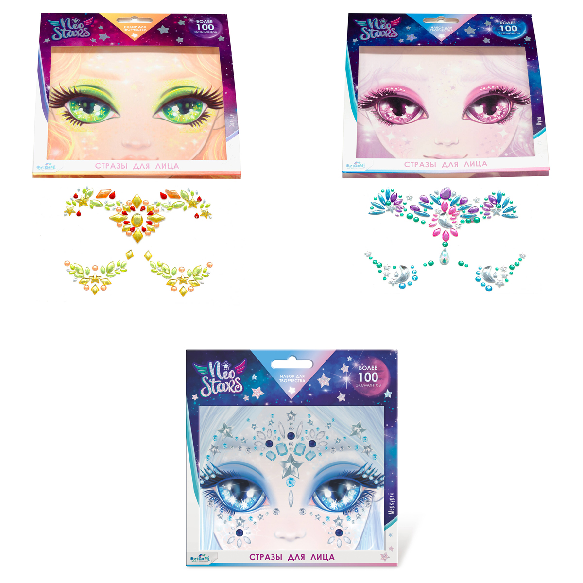 Стразы для лица Neo Stars "Солнце/ЛунаМеркурий/ Марс", ассорти