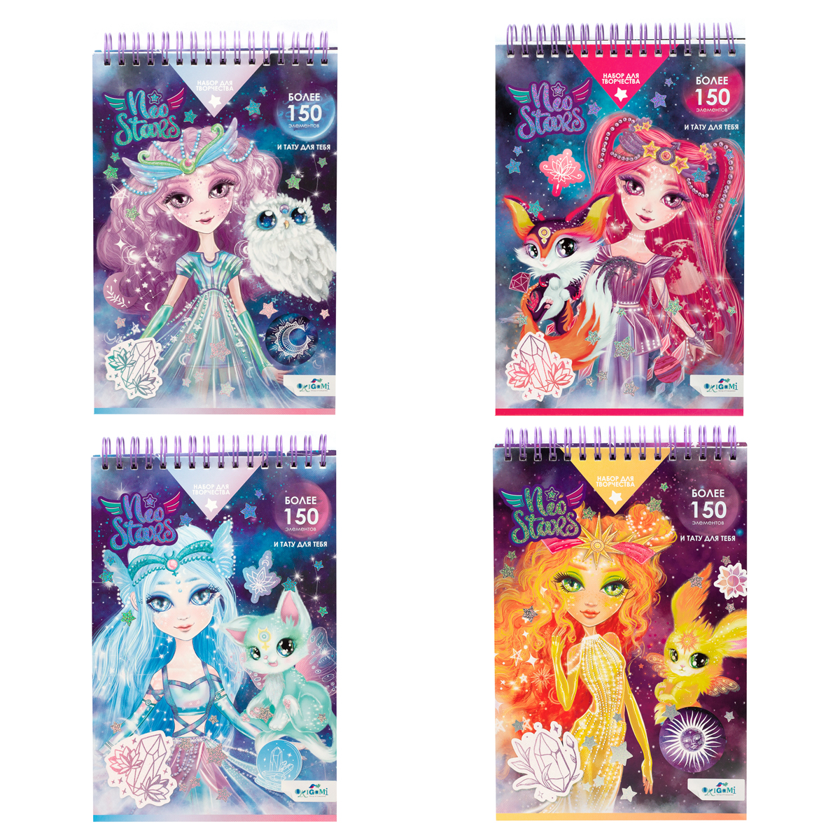 Блокнот для творчества с наклейками и тату Neo Stars "Солнце/Луна/Марс/Меркурий", ассорти