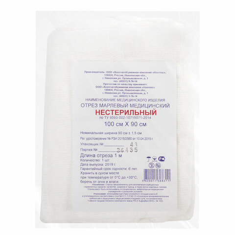 Марля медицинская отбеленная NEW LIFE отрез 1 м, плотность 36 (±2) г/м2, 62494