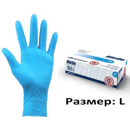 Перчатки нитриловые неопудренные нестерильные голубые размер L 50 пар (100 штук) Nitrile