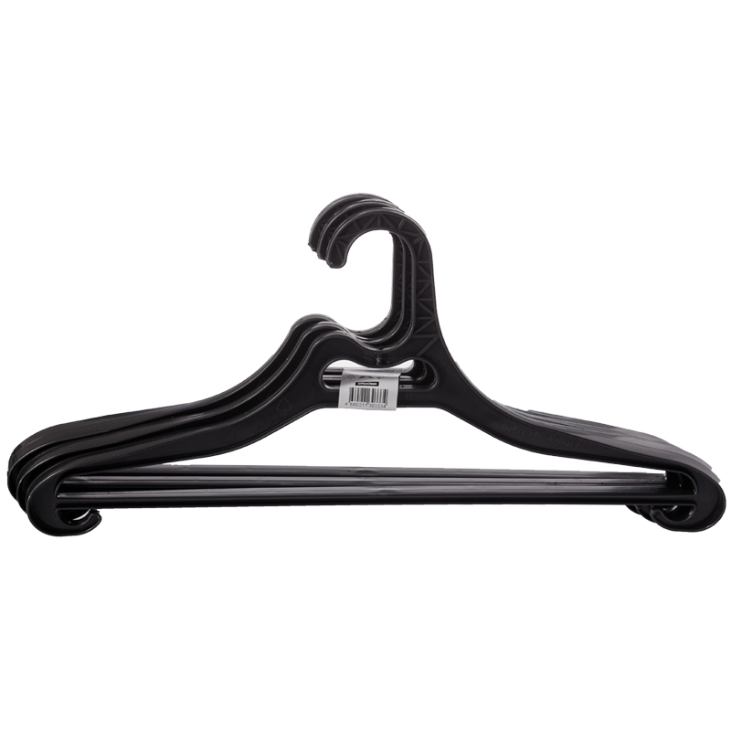 Вешалка-плечики OfficeClean, набор 3шт., пластик, плоская, перекладина, крючки, 48см (р.52-54), черный