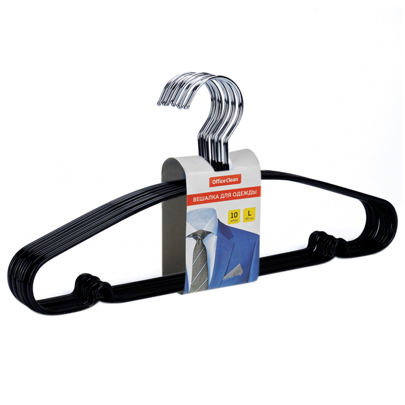 Вешалка-плечики OfficeClean, набор 10шт., металл/ПВХ, размер 48-50, цвет черный