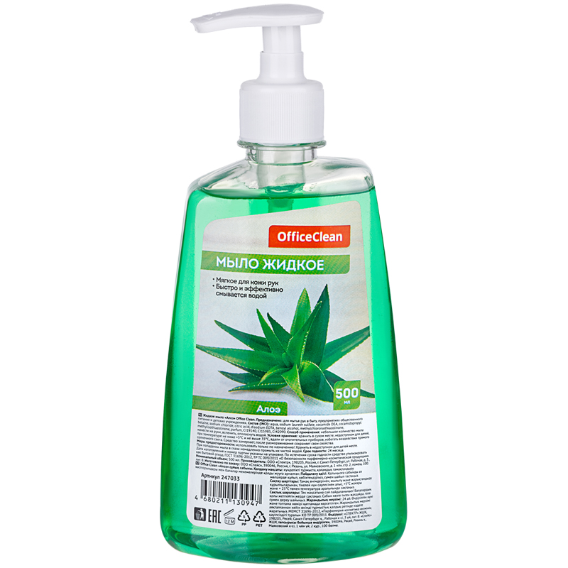 Мыло жидкое OfficeClean "Алоэ", с дозатором, 500мл