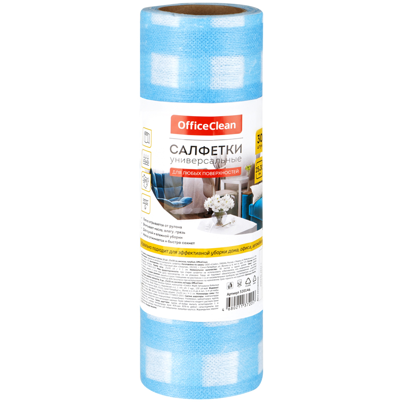 Салфетки универсальные OfficeClean, 25*30см, 30шт., в рулоне, 0,045г/м2
