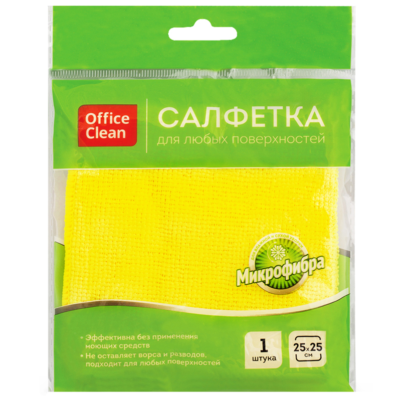 Салфетка для уборки OfficeClean, микрофибра, 25*25см, желтая