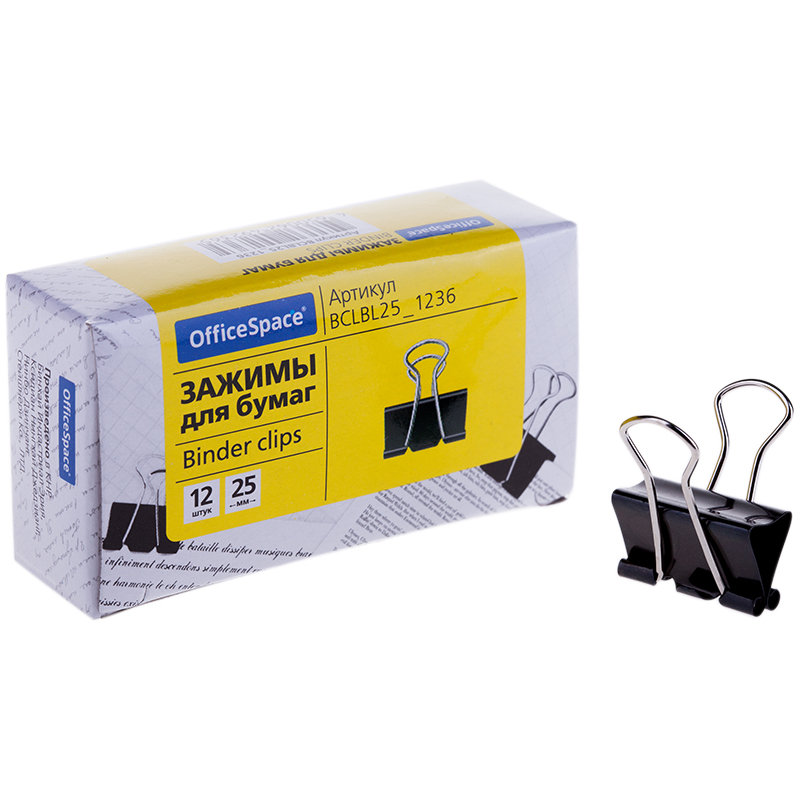 Зажимы для бумаг 25мм, OfficeSpace, 12шт., черные, картонная коробка